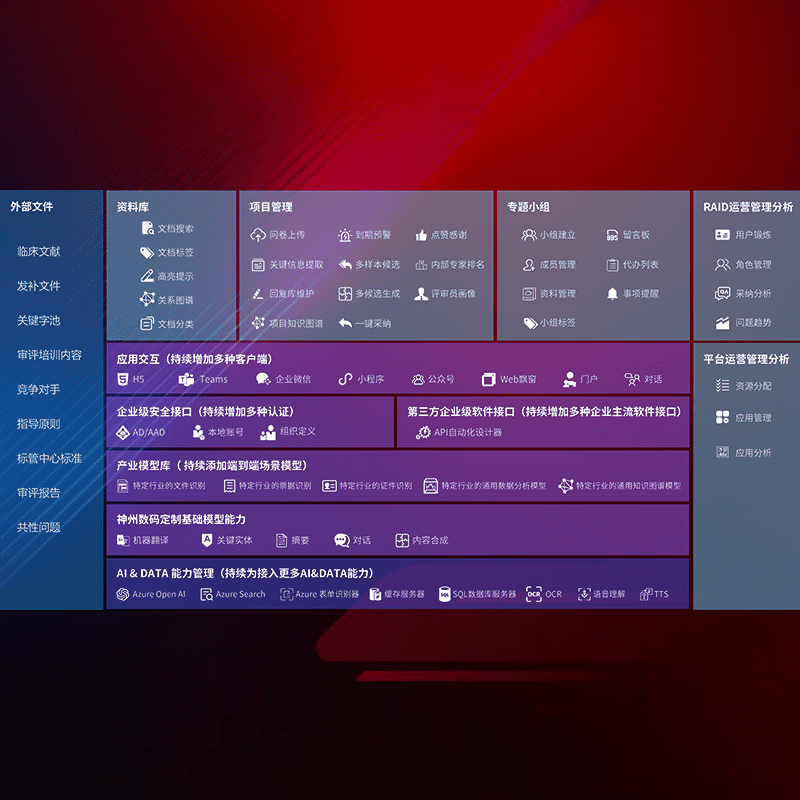 医疗器械产品上市前,,,,要熟悉严格与繁复评审标准,,,,整理分析监管机构指导文件中的海量信息。。。。企业急需一个智能化解决方案,,,,提升知识管理效率,,,提高评审通过率,,,以提升其市场竞争力。。